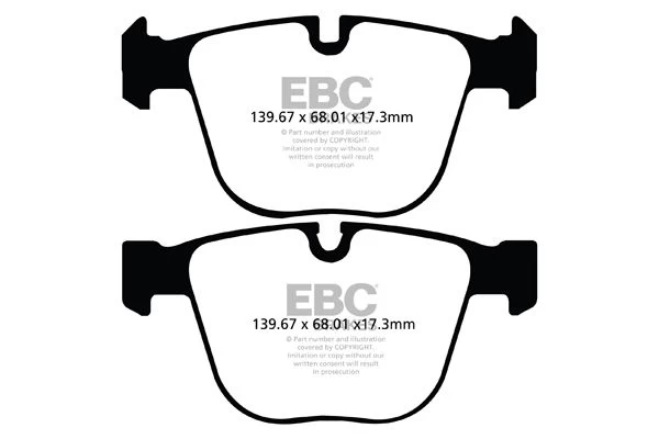 EBC Yellowstuff brake pads are a first in a new range of ‘Hybrid’ materials that can be safely and legally used on worlds roads, are a high friction upgrade pad for all fast street use and can also be used on the track with proper bedding. Yellowstuff has been the flagship pad by EBC for over a decade and gives instant brake response, great feel and modulations with silk-smooth noise free braking and was also improved in 2021 to be copper free and conform to all new legislations for the environment. They are also fully shimmed, chamfered and slotted. EBC Yellowstuff arrives with pad surface Brake-in coating to accelerate pad bedding after install.