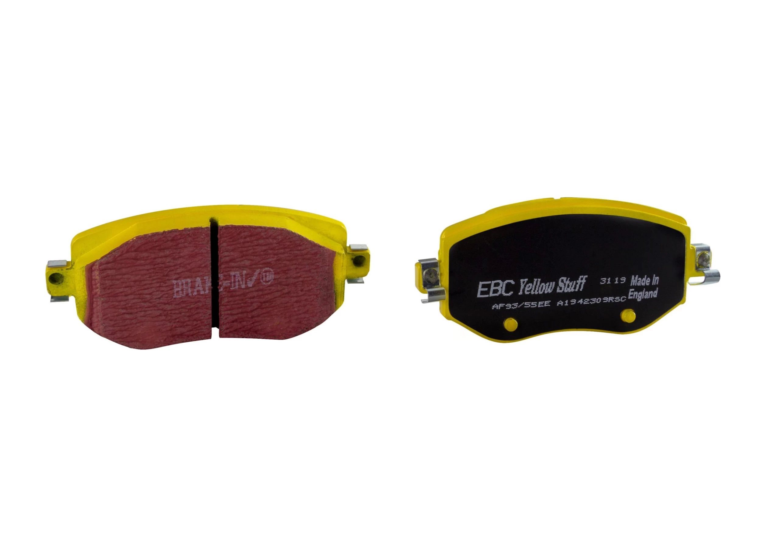 EBC Yellowstuff brake pads are a first in a new range of ‘Hybrid’ materials that can be safely and legally used on worlds roads, are a high friction upgrade pad for all fast street use and can also be used on the track with proper bedding. Yellowstuff has been the flagship pad by EBC for over a decade and gives instant brake response, great feel and modulations with silk-smooth noise free braking and was also improved in 2021 to be copper free and conform to all new legislations for the environment. They are also fully shimmed, chamfered and slotted. EBC Yellowstuff arrives with pad surface Brake-in coating to accelerate pad bedding after install.