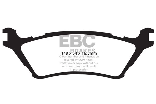 EBC Greenstuff 6000 pads are regarded as a first level brake improvement over stock providing an improvement in stopping power over OE pads. The “Greenstuff 6000” formula has pushed the barriers of performance of organic made friction materials. These brake pads have a specifically designed softer compound, that has been deliberately created to provide superb brake control and pedal response, for use on SUV’s and light trucks at in highway use. To complement the pedal feel, the compound allows for extremely low disc wear and better resistance to off-road conditions of dust, sand and so on. All EBC Greenstuff brake pads are manufactured in the UK and are fully ECE R90 approved for road legal use in Europe.