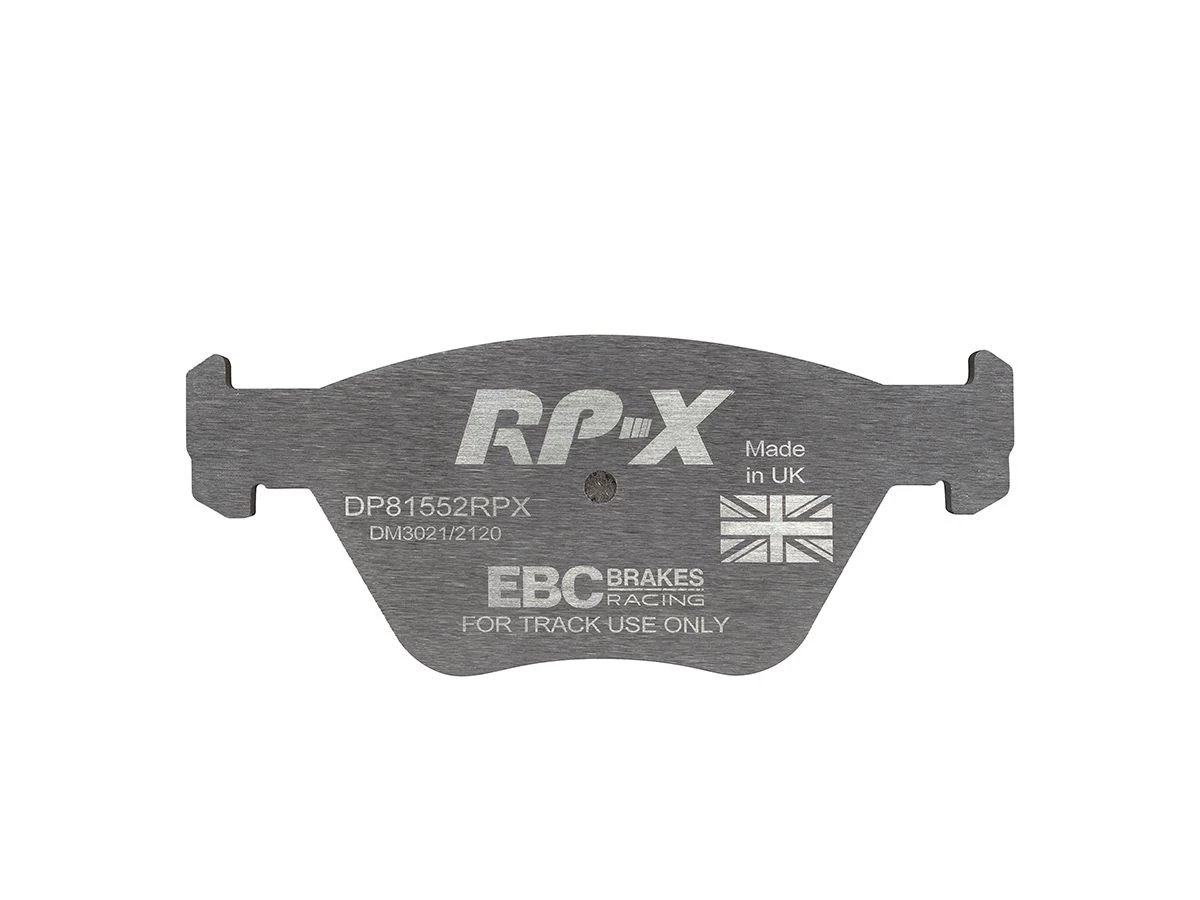 EBC Racings’ RPâX compound is an ultraâhigh performance track and race pad designed for performance vehicles driven hard on track and for dedicated race cars. The RPâX possesses a high friction level of 0.55 between 0 â 850°C and achieves 100% brake effect from cold. This makes RP-X an excellent choice for sprint racing or hill climb events, where full brake performance is essential without requiring any âwarming upâ, but also makes RP-X well suited to any type of circuit use where a high initial bite and powerful brake response is desirable.