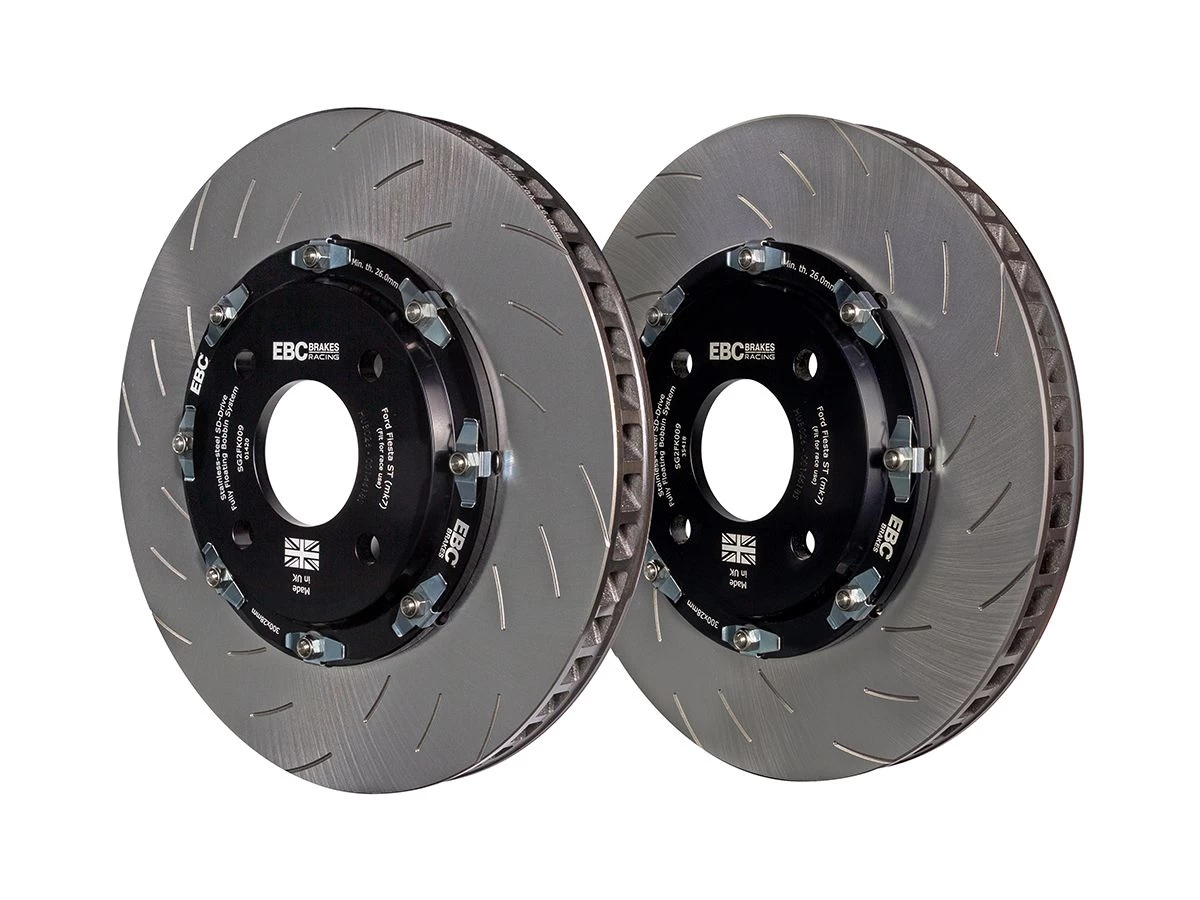 EBC’s 2-piece BBK replacement discs have been tested to withstand hundreds of hours the harshest track driving. All cast iron rings feature 48 curved vanes and are handed left and right, ensuring the vanes always rotate in the correct direction, giving maximum cooling efficiency.